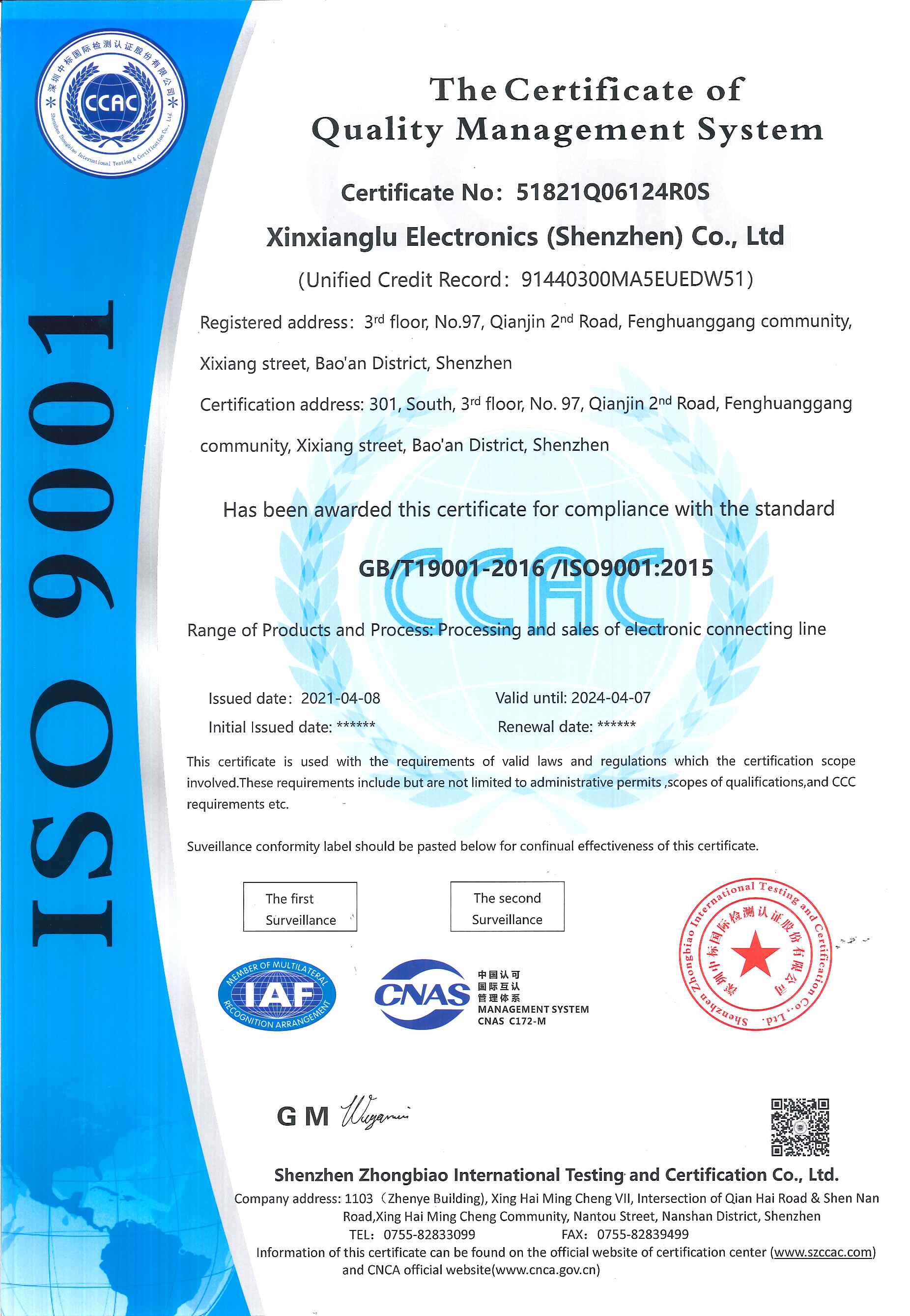 2021年鑫翔鷺電子在深圳市創(chuàng)思維企業(yè)管理技術(shù)服務(wù)有限公司的輔導(dǎo)下順利通過ISO9001質(zhì)量管理體系認(rèn)證。創(chuàng)思維專業(yè)從事客戶驗(yàn)廠、認(rèn)證、咨詢輔導(dǎo),價(jià)格公道,服務(wù)優(yōu)良,“咨詢+輔導(dǎo)+考勤”一站式服務(wù)保姆式輔導(dǎo),全方位實(shí)時(shí)跟蹤,多年來成功幫助上萬家企業(yè)順利通過驗(yàn)廠,在行業(yè)中有口皆碑!