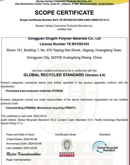 在創思維驗廠網老師專業技術、全程跟進耐心細致輔導以及公司全體員工配合下,一次性順利通過GRS認證,為將來公司發展奠定了良好的發展基礎,既開拓了市場同時也增加了消費者對公司的信賴,在這里再次祝賀東莞鼎智高分子材料有限公司2024年一次性成功通過GRS認證,同時也期待未來再次與創思維驗廠網合作!