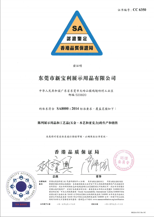 在管理上,新寶利公司一直堅持:“顧客為尊,永續改善”的經營方針,全面執行質量與環境管理體系,努力提升品質、減少污染、節能降耗,先后順利通過ISO9001-2000質量管理體系,公司相繼榮獲:制鏡行業常務理事單位、優質本土民營企業、守合同重信用企業、先進民營企業、優質供應商、粵商最具成長性50強。